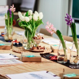 Die Präsentation des Arbeitsplatzes war super schön. Vielen lieben Dank für die tollen Blumen und das schöne Päckchen. Teilnehmerin Brushlettering Workshop